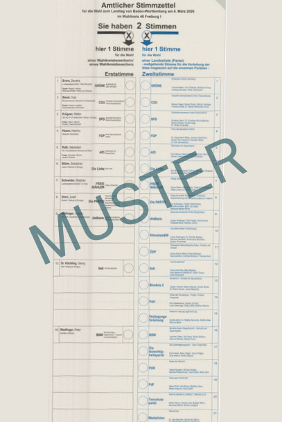 Wahl zum Landtag von Baden-Württemberg am 08.03.20