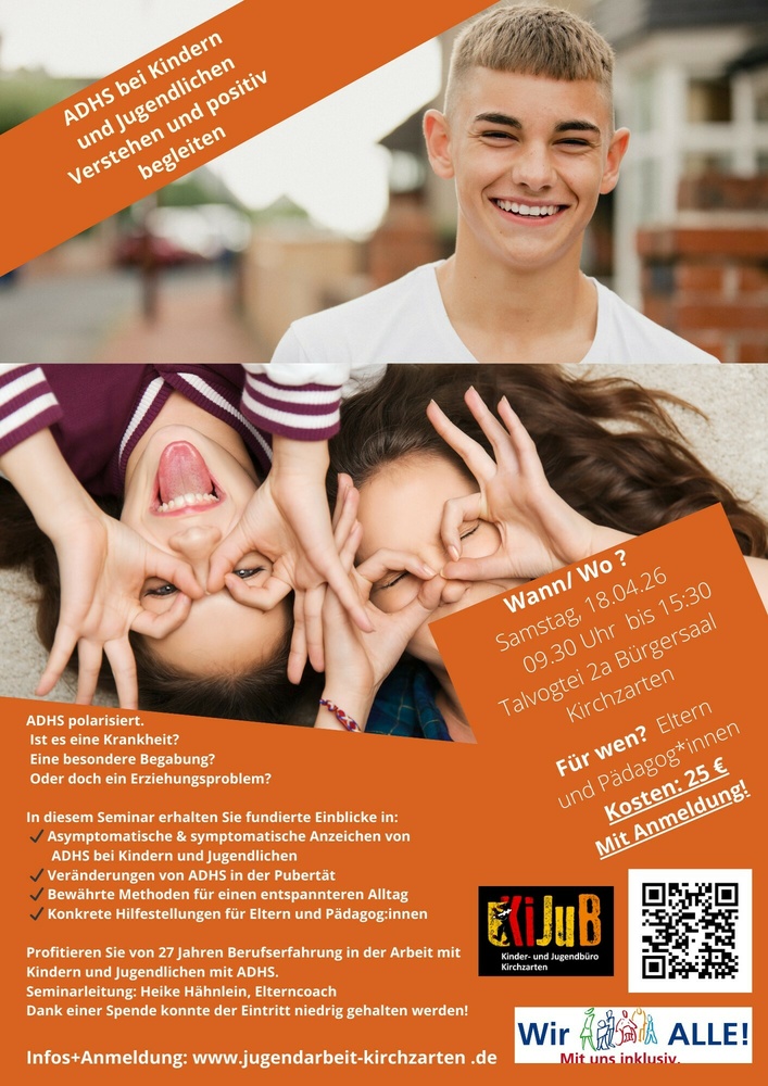 Der Elternworkshop „ADHS bei Kindern und Jugendlichen verstehen und begleiten“ möchte Orientierung geben, Wissen vermitteln und Mut machen. Eltern und pädagogisch Interessierte erhalten fundierte Einblicke in typische Anzeichen von ADHS sowie praktische Impulse für einen entspannteren Familienalltag.